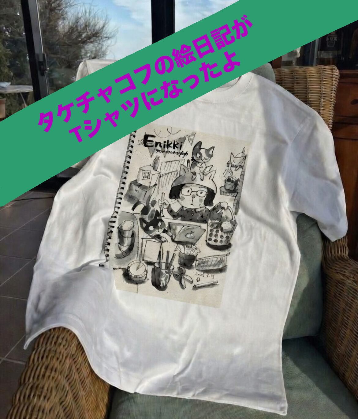 タケチャコフの絵日記がTシャツになったよ 毎月限定10枚 ▪️サイズ XL ワンサイズ ▪️カラー オフホワイト ▪️生地の厚み 5.6オンス ▪️素材 綿100%