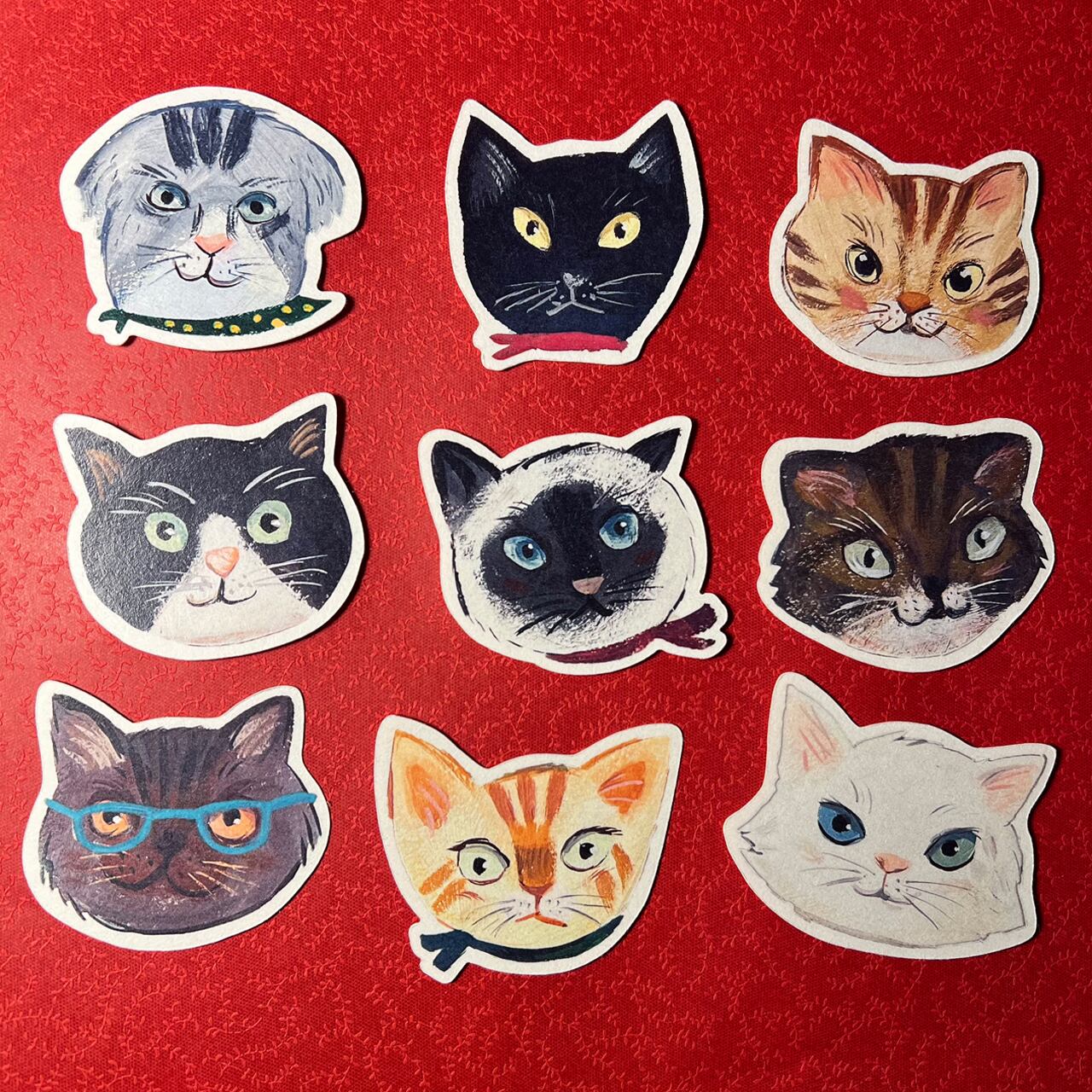 作品『猫ネコ全員集合』の猫たちが シールになりました。小さな箱に詰まった思い出をどうぞ♫ 絵柄違いのシールは、9種類。 並べて貼っても,一枚でもカワイイ♫ 【注意】切手ではなく、切手のイラストのシールです。郵便にはご使用できません。 ※5cmx7cmx2.5cmのスリーブ箱に9枚のシールが入っています