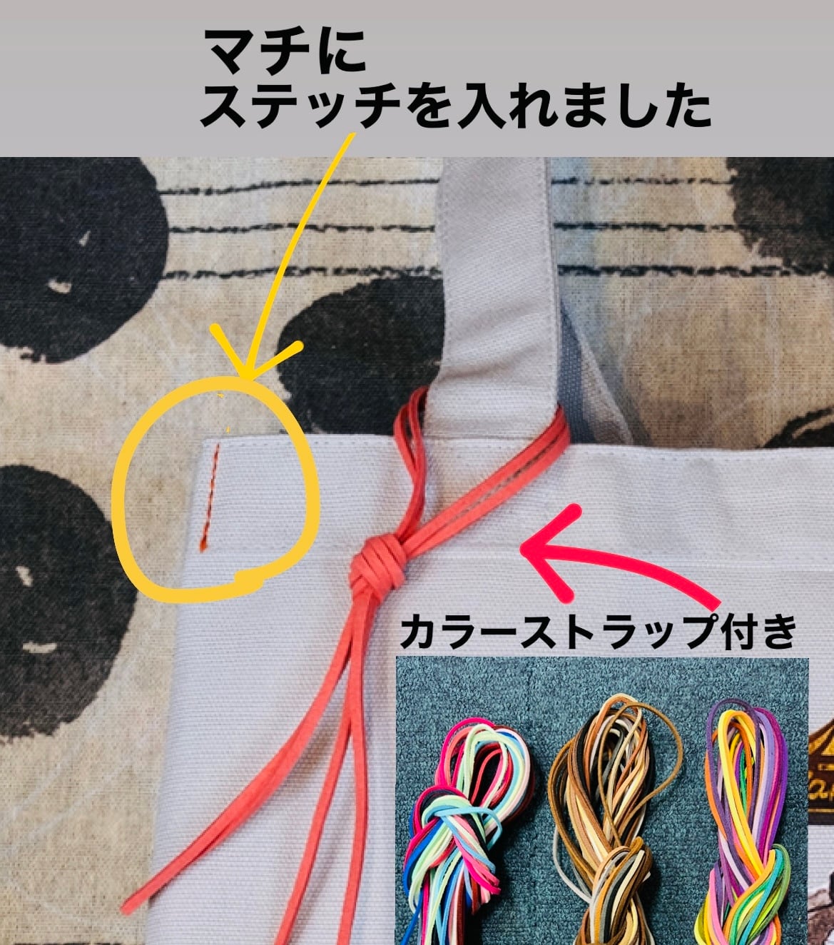 まちにステッチを入れたことで形をキープして、コンパクトなバッグになりました。