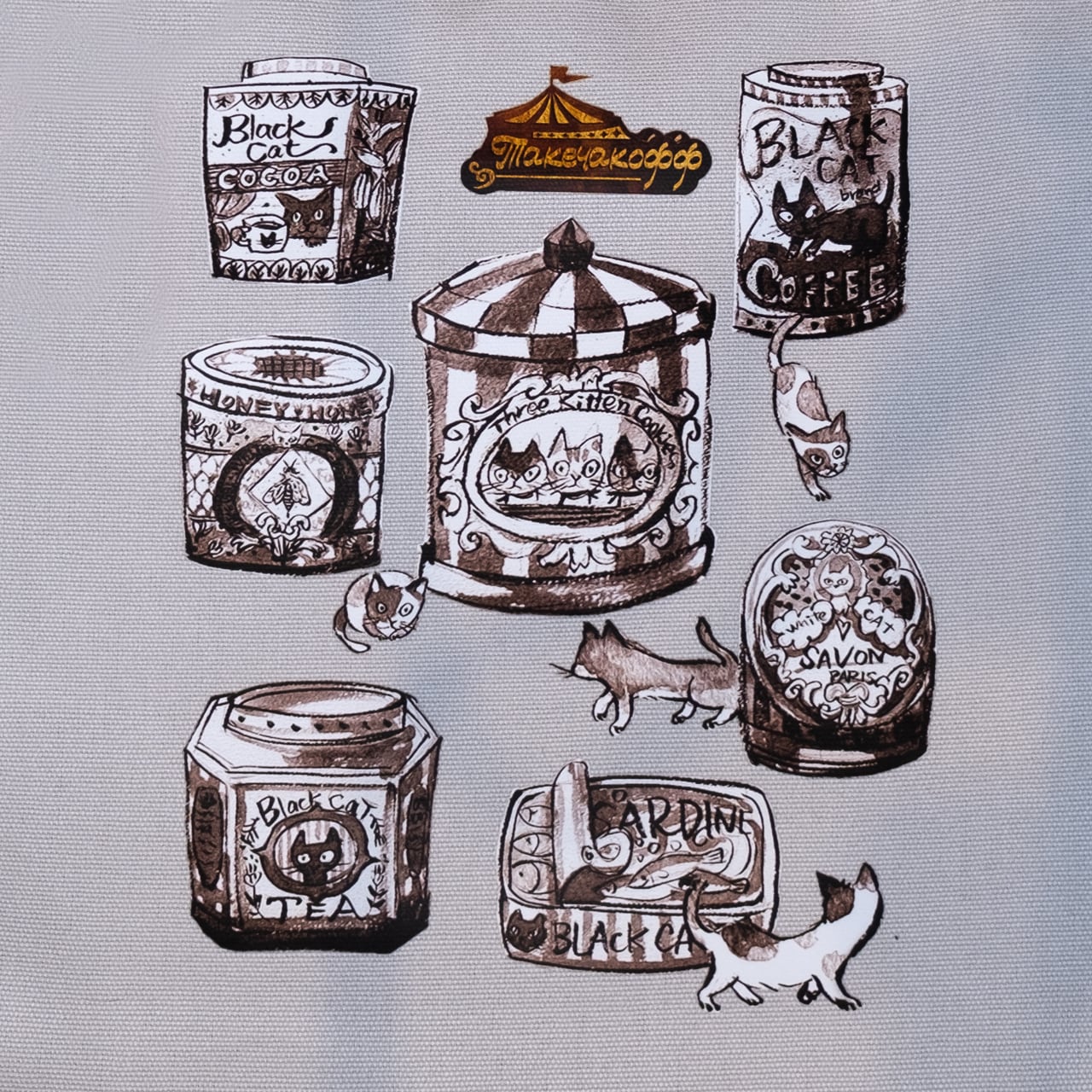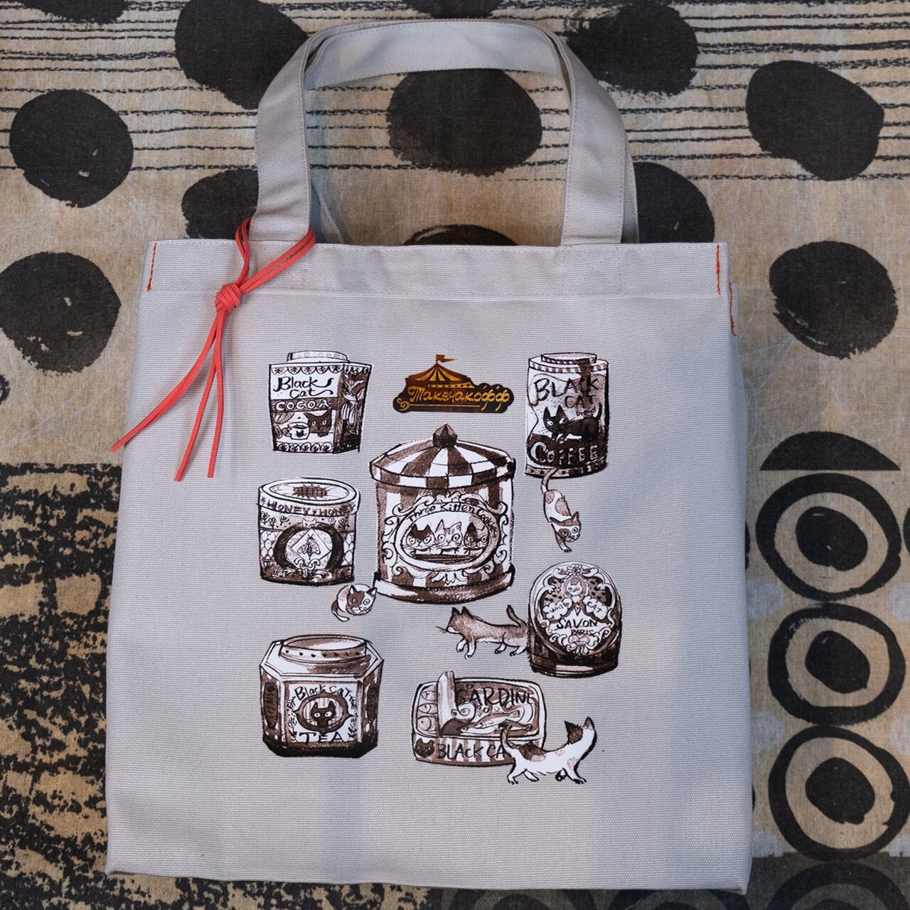 グレーCATラベルのトートバッグ(手刷り)【ネット限定】