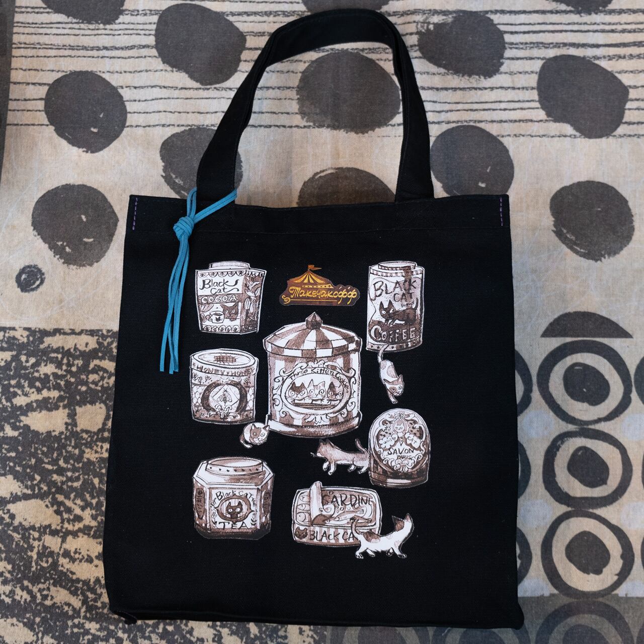 ブラックCATラベルのトートバッグ(手刷り)