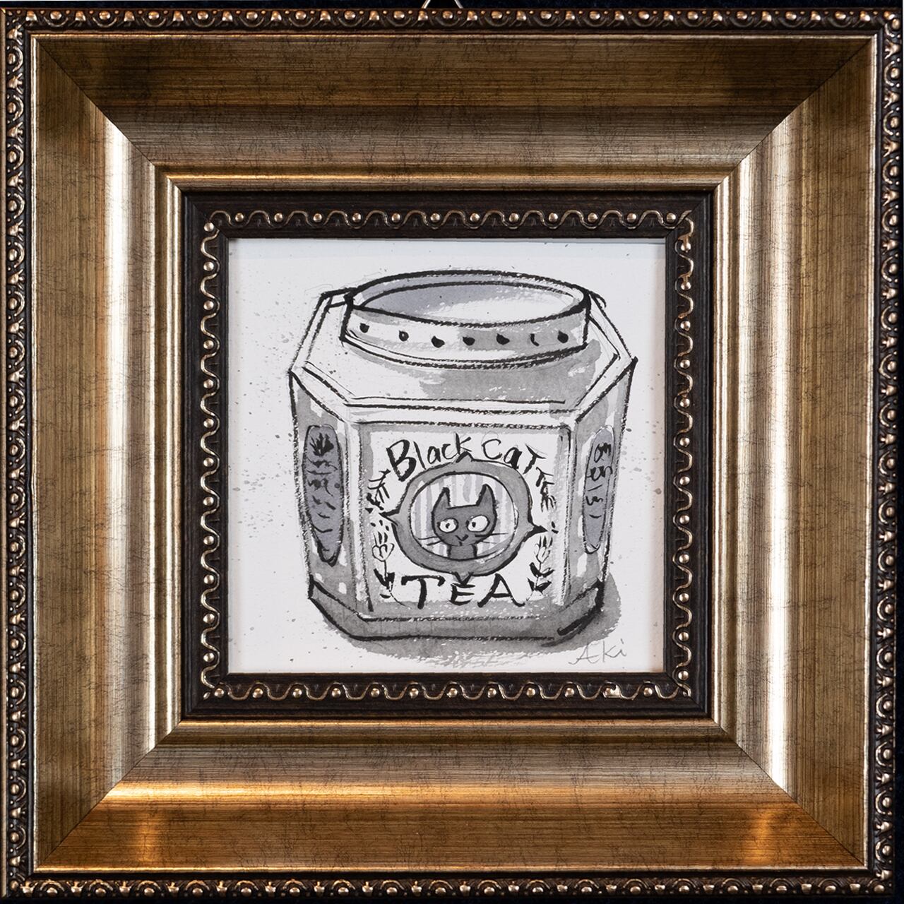 サイズ●214×214×38mm 素材・技法●墨/ガッシュ/水彩紙 制作年●2024 エディション●1点物 額装●画像参照